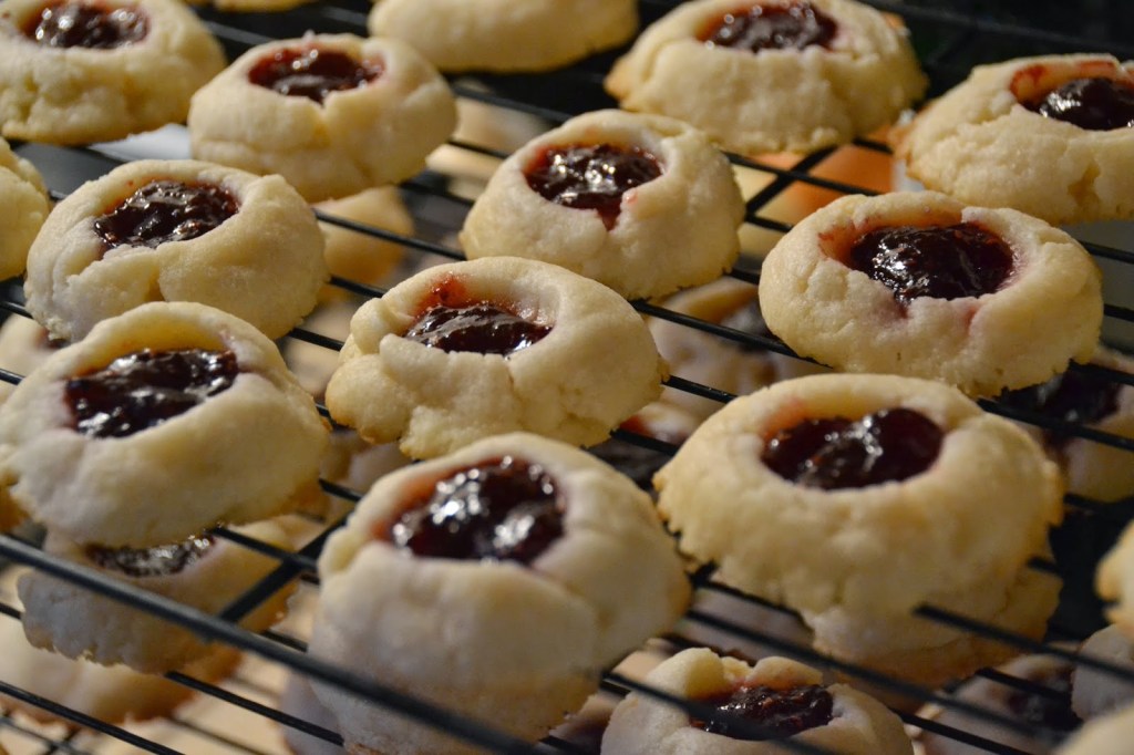 - Bake the shortbread thumbprint cookies for 14-15 minutes, or until very lightly browned on the edges. The cookies will puff up and spread slightly. Do no over bake. In fact, I only baked mine for 13-14 minutes. I prefer them a little soft. Allow the cookies to cool on the baking sheet for 5 minutes before transferring to a wore rack.