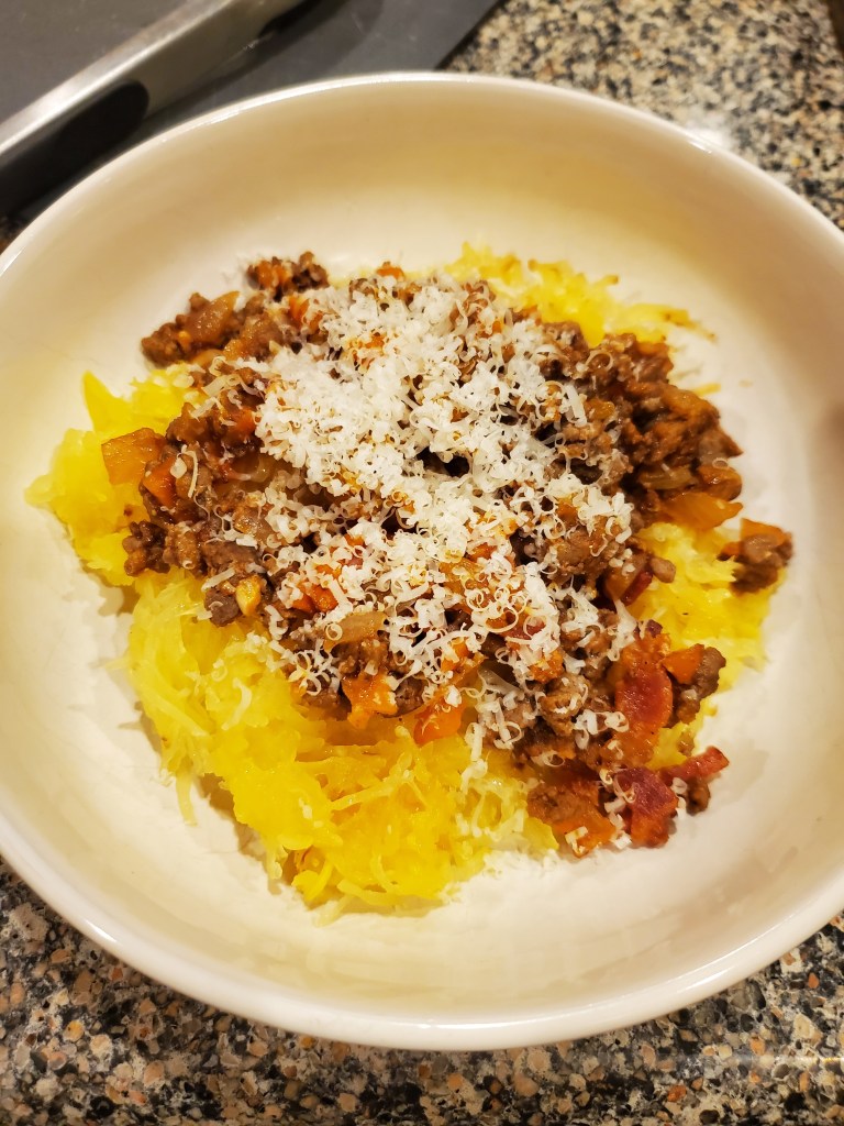 - 1 large spaghetti squash, cut in half lengthwise, seeds removed