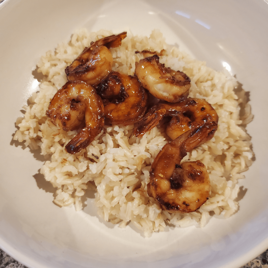 - Serve shrimp with cooked marinade sauce and a garnish of green onion. The sauce is excellent on brown rice and steamed veggies on the side.