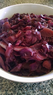 - 1 red cabbage, sliced 1/4″ thick